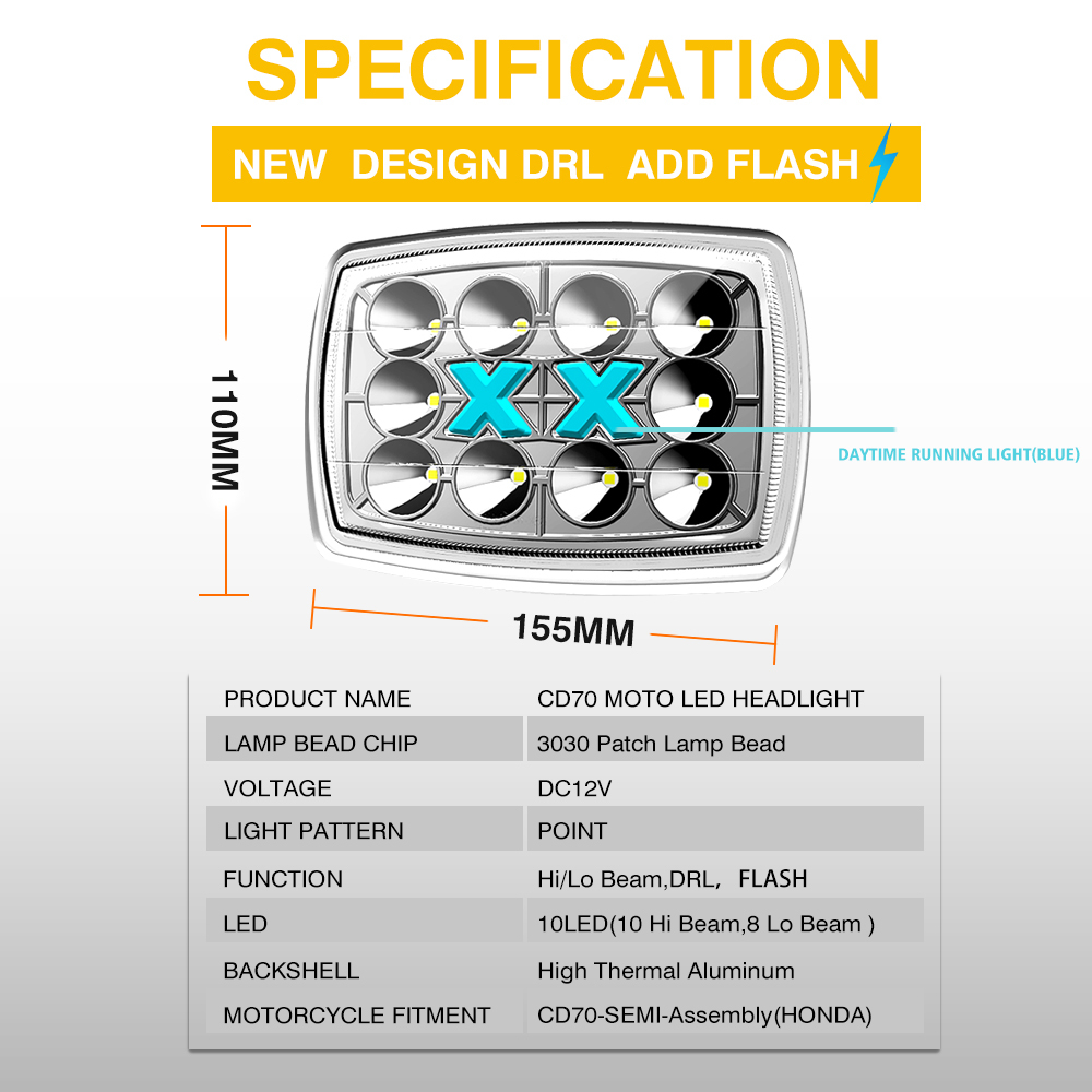 | برجسته کردن: | چراغ جلوی LED موتورسیکلت 12 ولت,چراغ جلوی LED CD70 با DRL,چراغ های جلو موتورسیکلت,CD70 LED headlight with DRL,motorcycle high low beam headlight |